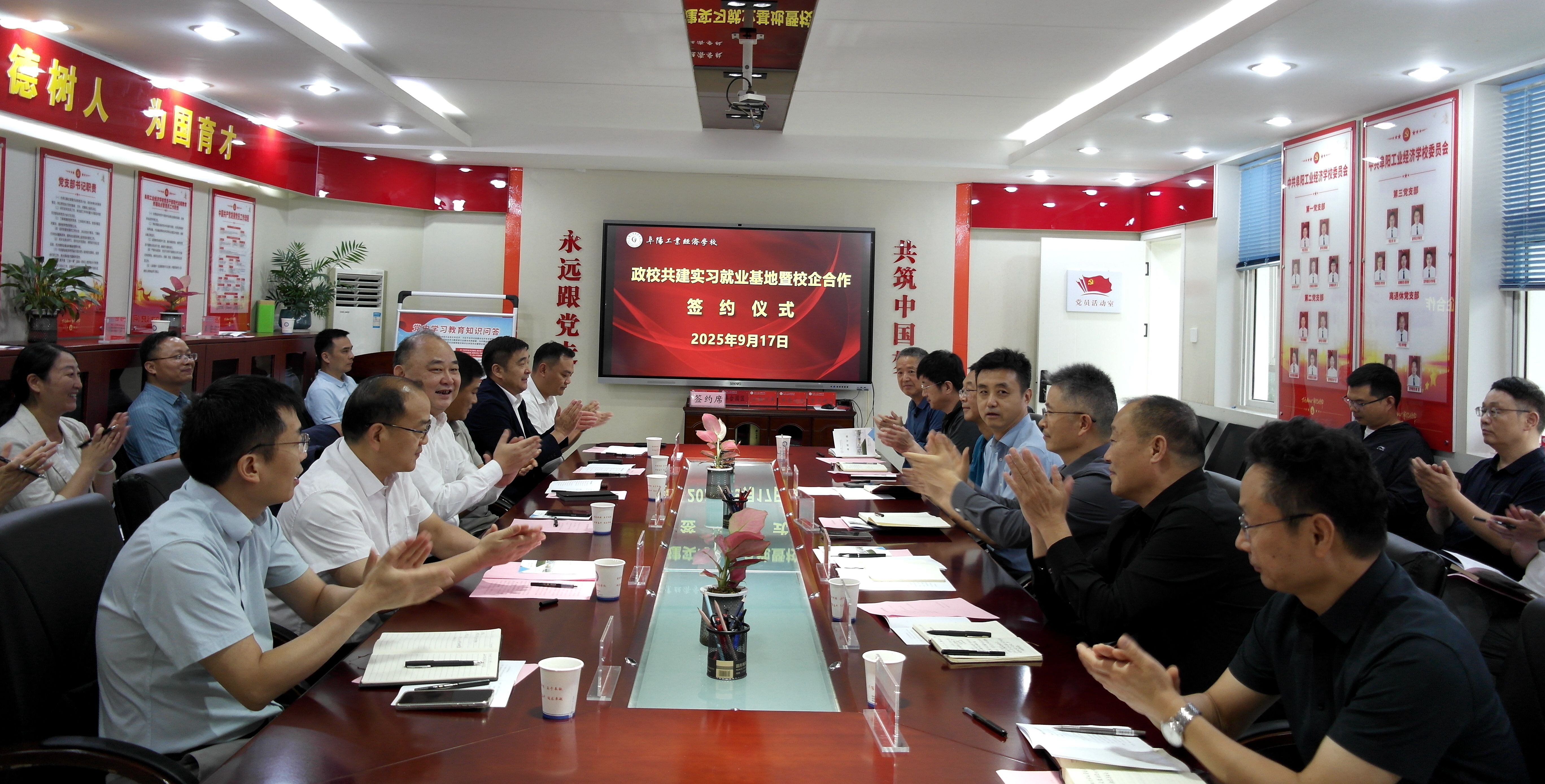 9月17日,阜合现代产业园区(下称“阜合园区”)与我校政校共建实习就业基地暨校企合作签约活动顺利举行。园区主要负责人吕戈,副主任、赵东朝和园区产业发展与人才工作相关人员,园区多家重点企业代表,我校党委班子成员及相关科处室负责人参会。活动中先后进行了座谈、现场签约和实训车间参观,会议由校党委书记陈颍峰主持。