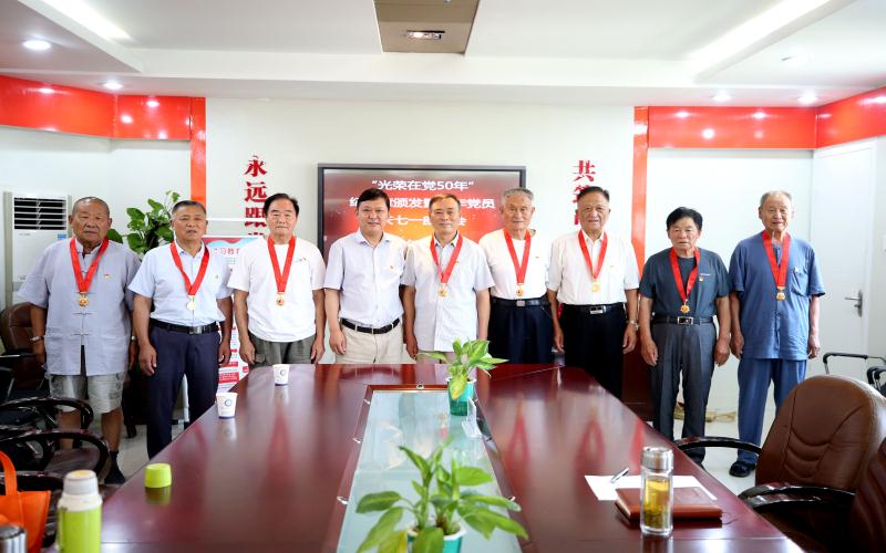 校党委书记、校长周波现场为老党员颁发“光荣在党50年”纪念章,向广大老党员表示诚挚问候,并对大家长期以来为学校事业做出的卓越贡献表示衷心感谢和崇高敬意,希望大家珍惜光荣历史、永葆政治本色,继续发光发热。
