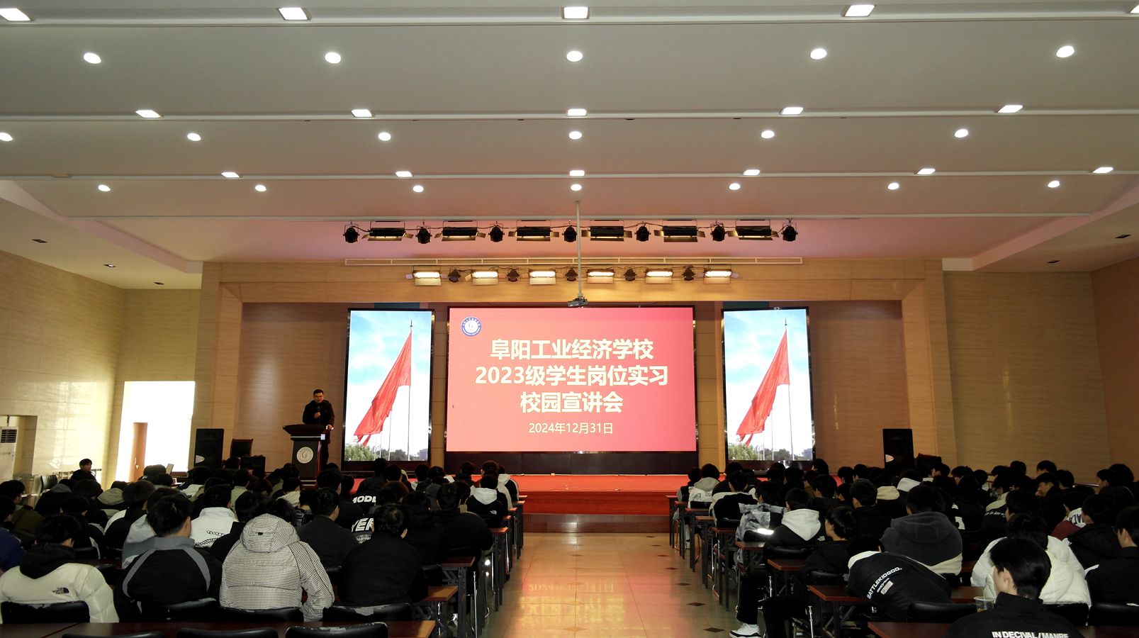 为进一步加强校企深度合作,搭建实习学生选岗和用人单位招聘平台,促进学生与企业之间的双向选择, 12月31日,阜阳工业经济学校在校内多功能报告厅举办专场校园双选会。合肥长安汽车有限公司、合肥海尔空调器有限公司、安徽壹太电器有限公司三家用人单位预约到校宣讲,我校2023级汽车运用与维修、汽车美容、数控技术应用、服务机器人、制冷等专业150余名学生参加本次活动。