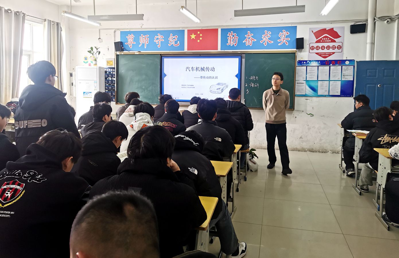 3 月 14 日上午第3节课,任禾老师在2024级汽车运用与维修班开展《汽车机械传动》公开课示范教学。任老师在课堂上,从汽车机械传动的原理出发,以“V带的结构”教导学生做人做事应张弛有度、收放自如,将专业知识与人生态度教育巧妙结合,引导学生正确处理学习与生活中遇到的各类难题与困境。