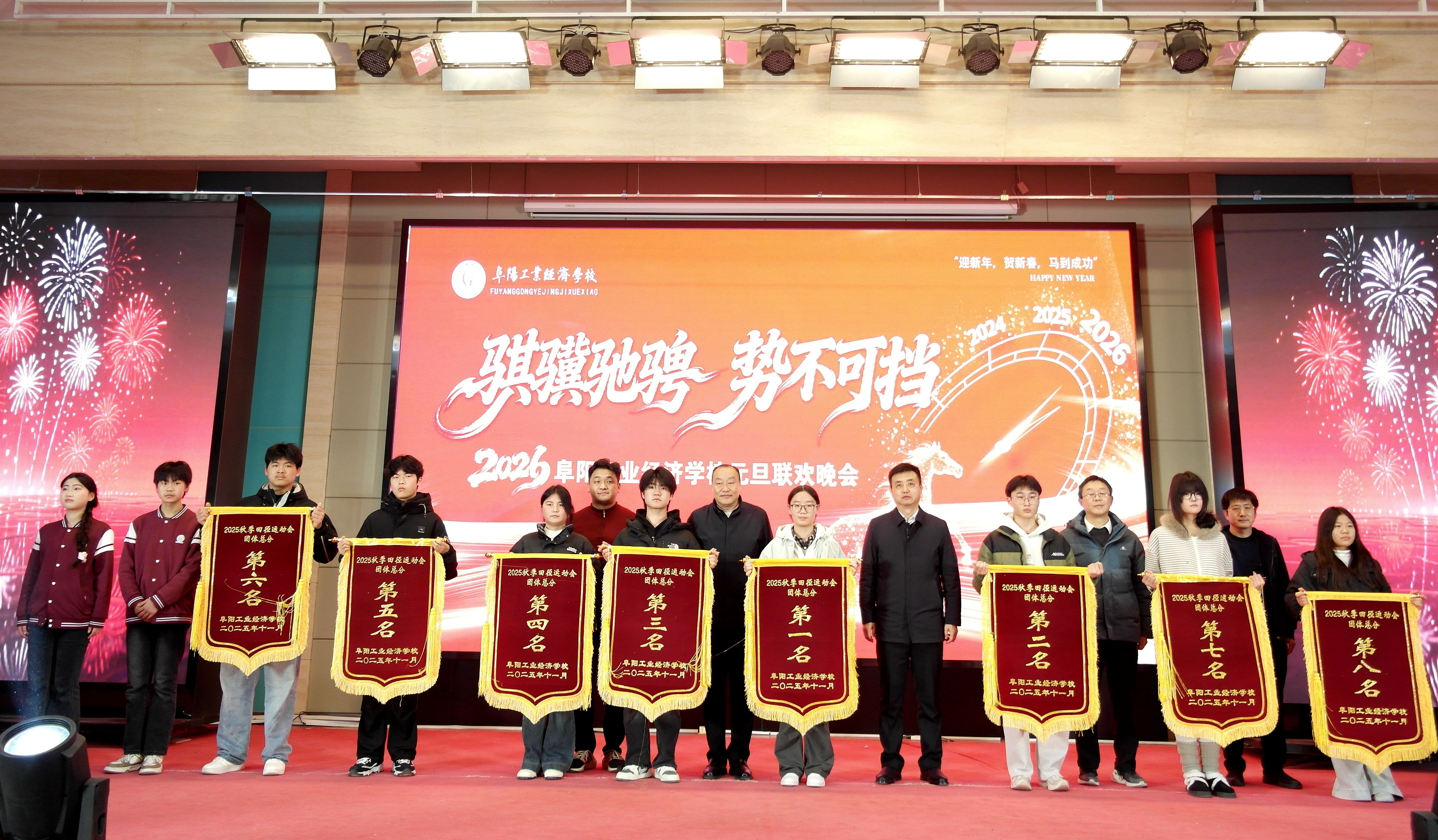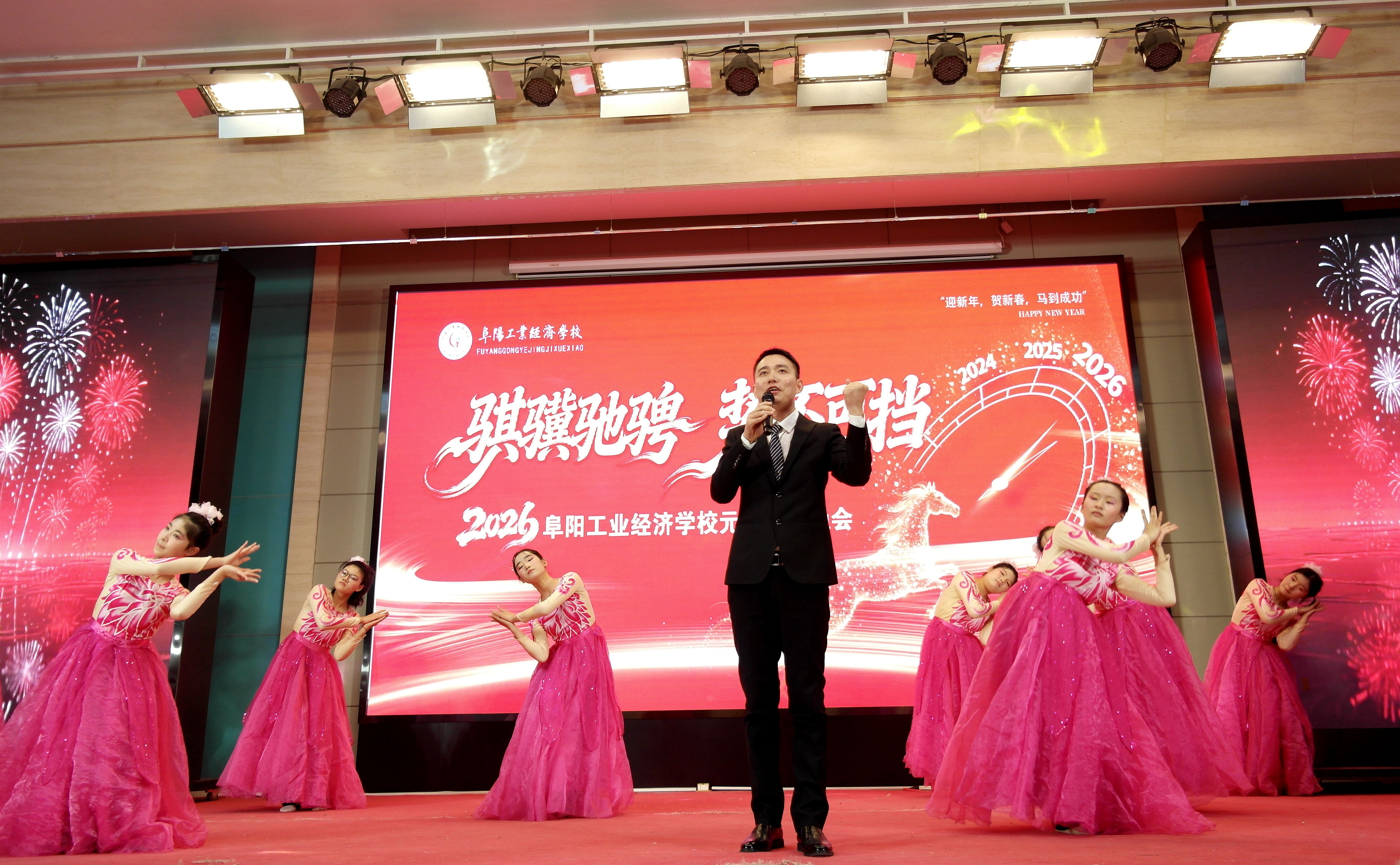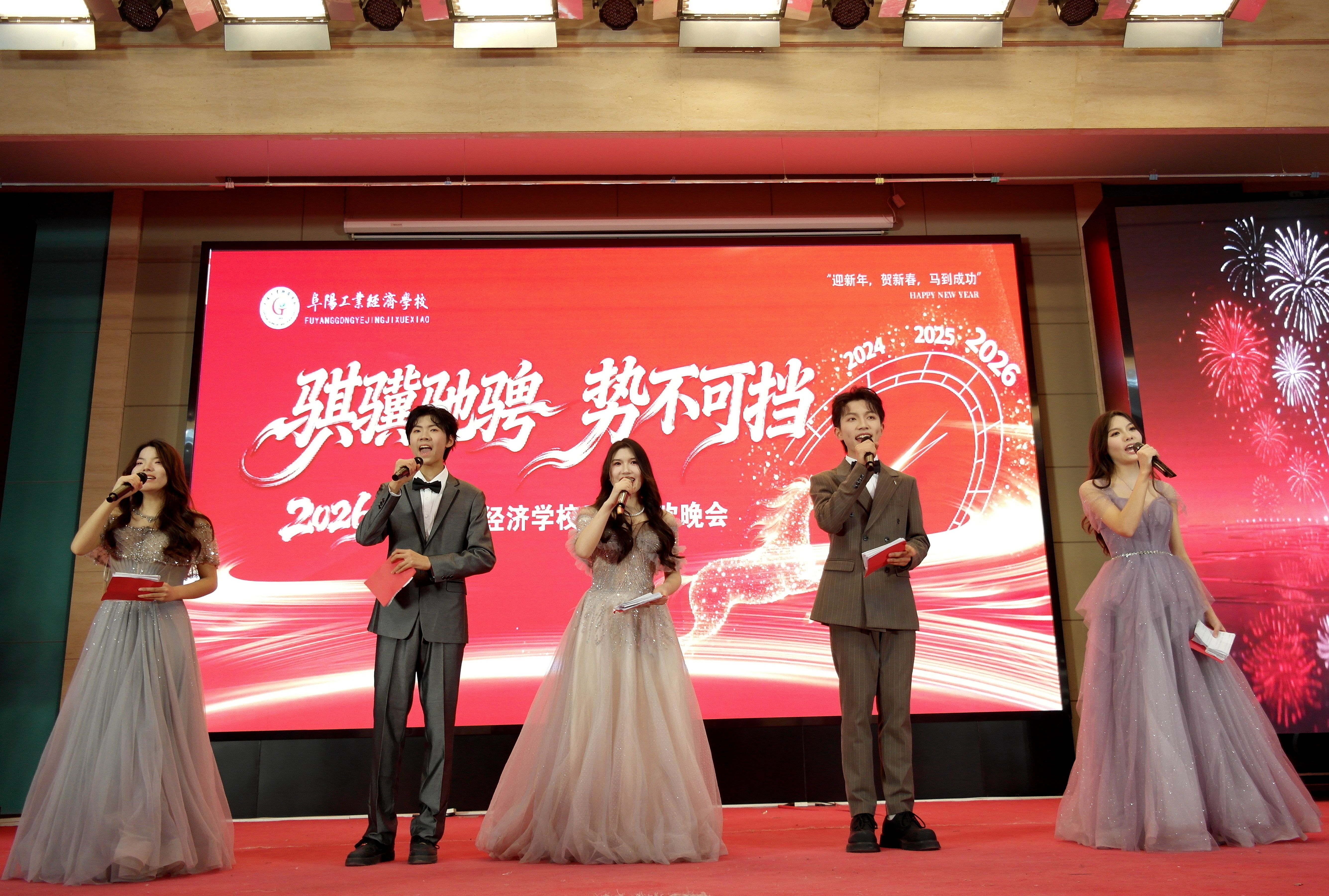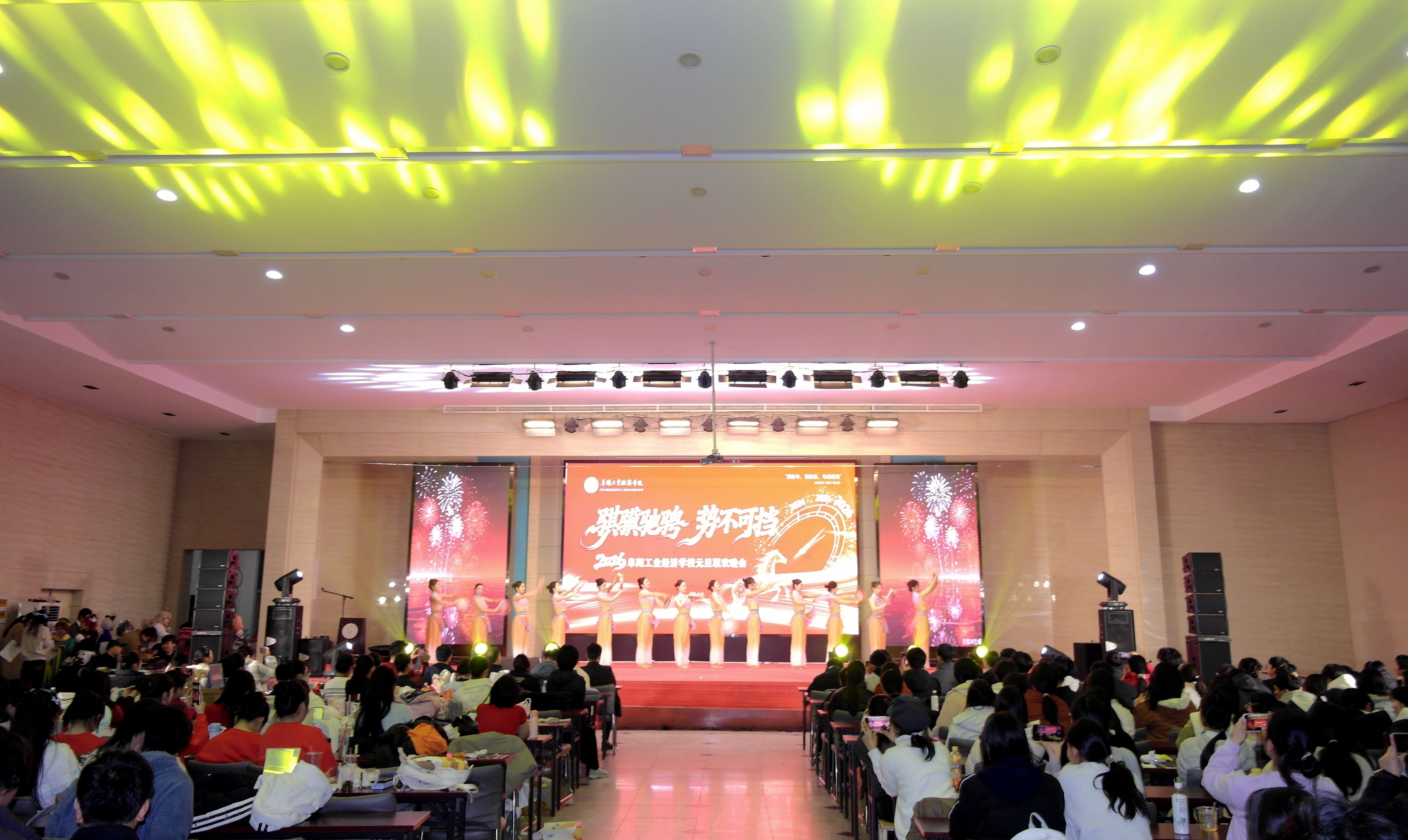 岁序更替,华章日新。12月30日晚,阜阳工业经济学校南校区多功能报告厅灯火璀璨、欢声如潮,以“骐骥驰骋 势不可挡”为主题的2026年元旦晚会隆重上演。校领导、师生代表齐聚一堂,在歌舞翩跹中挥别耕耘的2025,于欢声笑语里迎接充满希望的2026,共同定格这场融青春活力、匠心底蕴与家国情怀于一体的视听盛宴。​