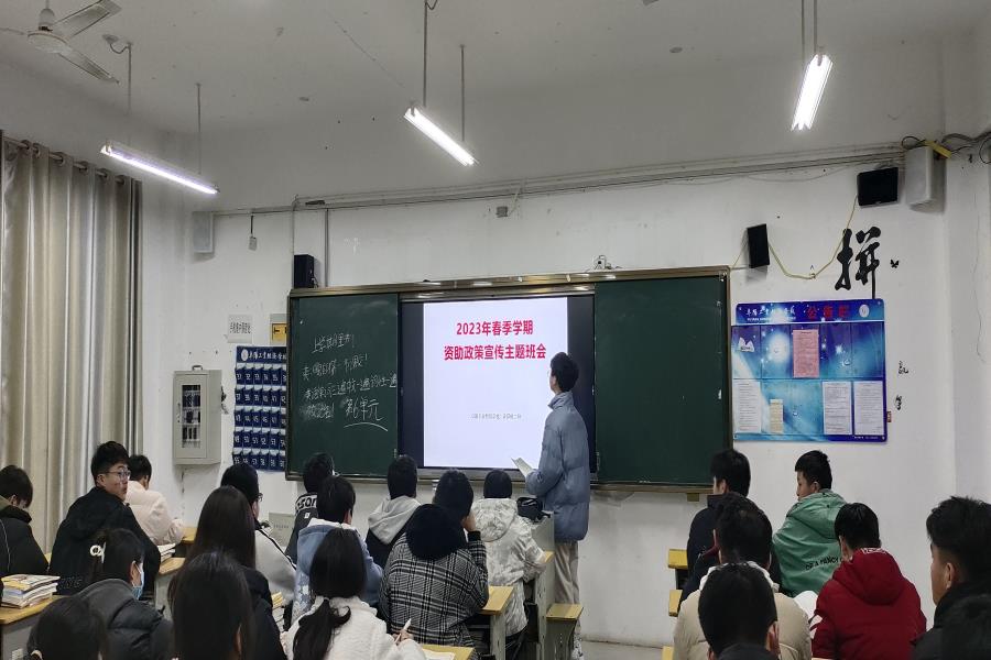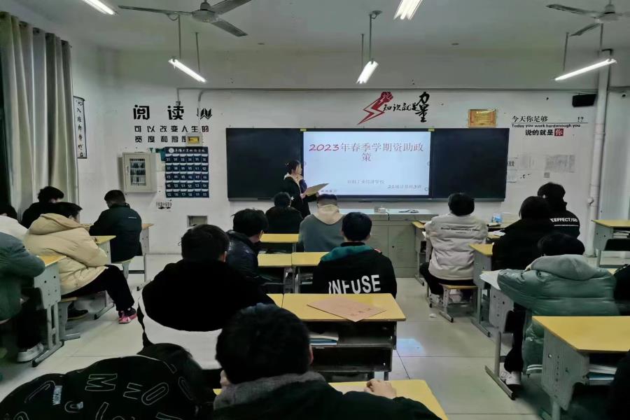 阜阳工业经济学校2023年春季学期各班级利用晚自习时间开展了学生资助政策宣传第一课主题班会活动。
