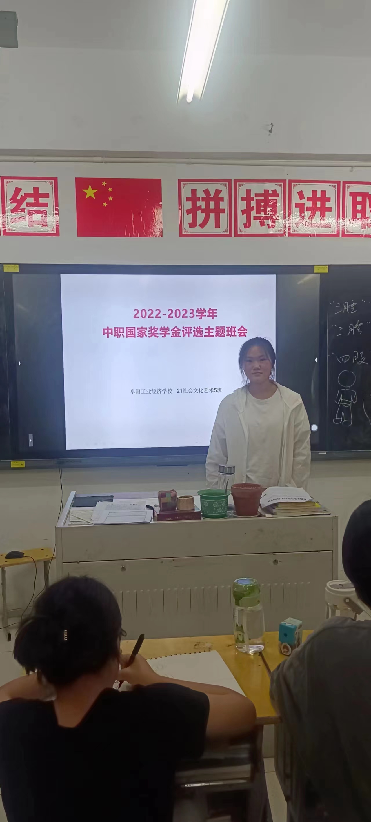阜阳工业经济学校各班级按校资助办要求利用晚自习时间召开2023年中职国家奖学金评选主题班会。班主任带领学生学习了国家奖学金的申请条件、评选标准、评审制度、申报流程及填表注意事项。并鼓励符合条件的学生踊跃报名,尽快办理奖学金相关事宜。