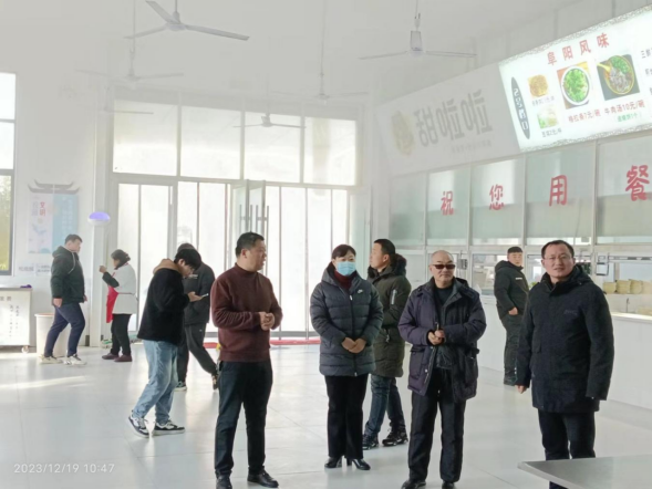 2023年12月19日上午,我校食安办李大柱主任及曹秀兰、唐愉快、杨辉三位老师带领学生代表到阜阳现代职业学校参观考察。阜阳现代职业学校潘主任的陪同参观了学校食堂、超市并交流食品安全管理工作,就餐时间分别请学生代表品尝现代职业学校食堂的菜品。