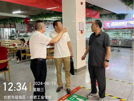 2024619日,我校食安办组织科室工作人员到合肥工业学校学习先进工作经验。此次活动在食安办隋文虎主任的带领下,以校园食品安全工作为主要内容的学习交流活动,旨在学习先进学校的食品安全管理工作经验和做法,以提升我校的校园食品安全管理水平和服务能力。本次活动通过实地参观、资料学习、工作座谈等形式,与合肥工业学校总务处蒋晓宏处长深入交流工作经验。