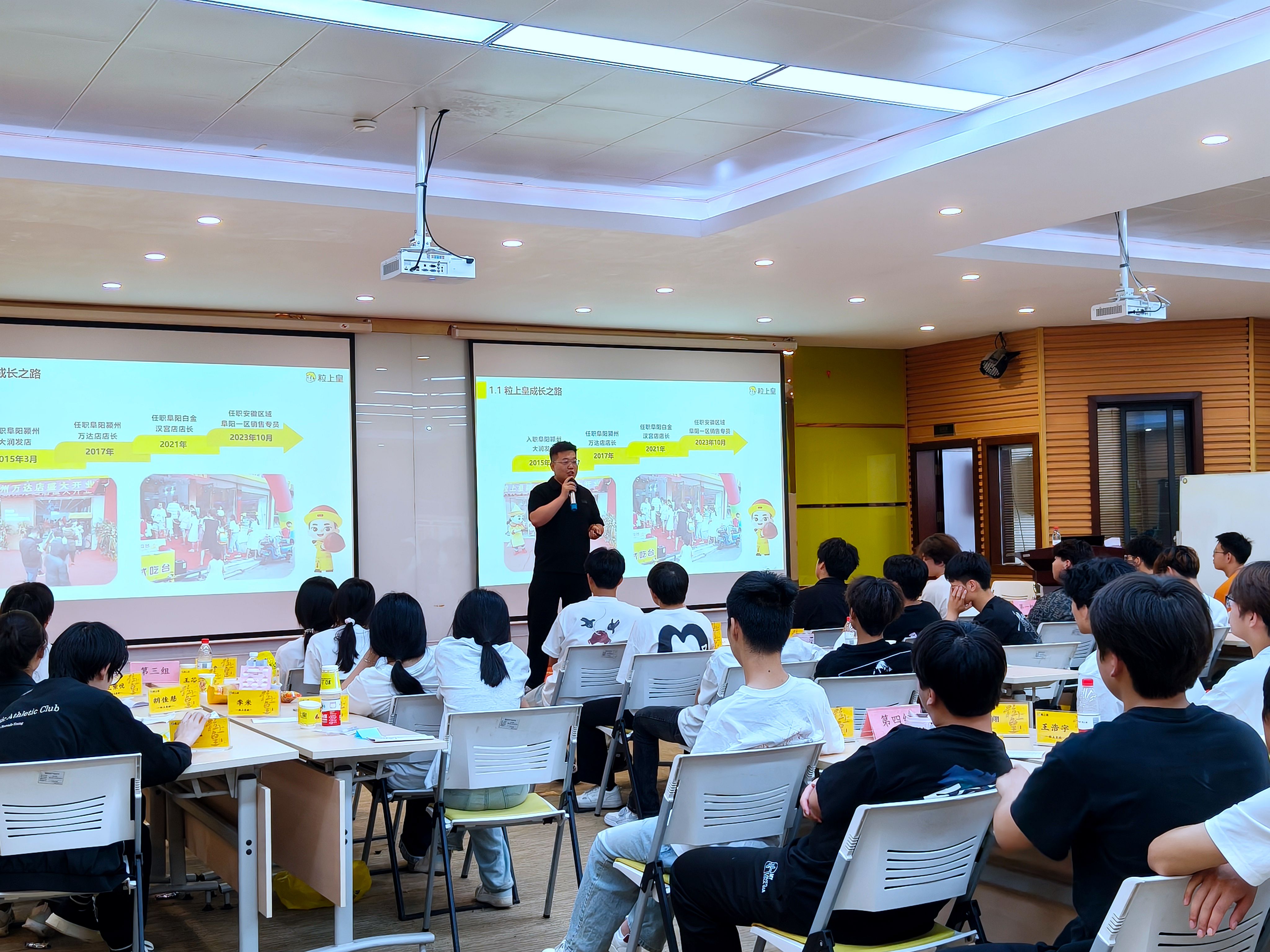 6月11日,企业讲师潘义辉以“小栗子”为切入点,从品牌文化、经营理念出发,通过《小栗子大梦想》课程为学生系统解析了粒上皇“从一颗板栗到产业链运营”的商业逻辑。6月12日,教学内容进一步深化,学生不仅走进工厂车间与门店进行实地参观,还通过《板栗&山楂知多少》课程深入学习核心产品的生长特性与贮藏技术。最后以《一路似锦的成长之旅》优秀员工分享会激励学生树立职业目标,努力学好文化课,练就兴业本领。