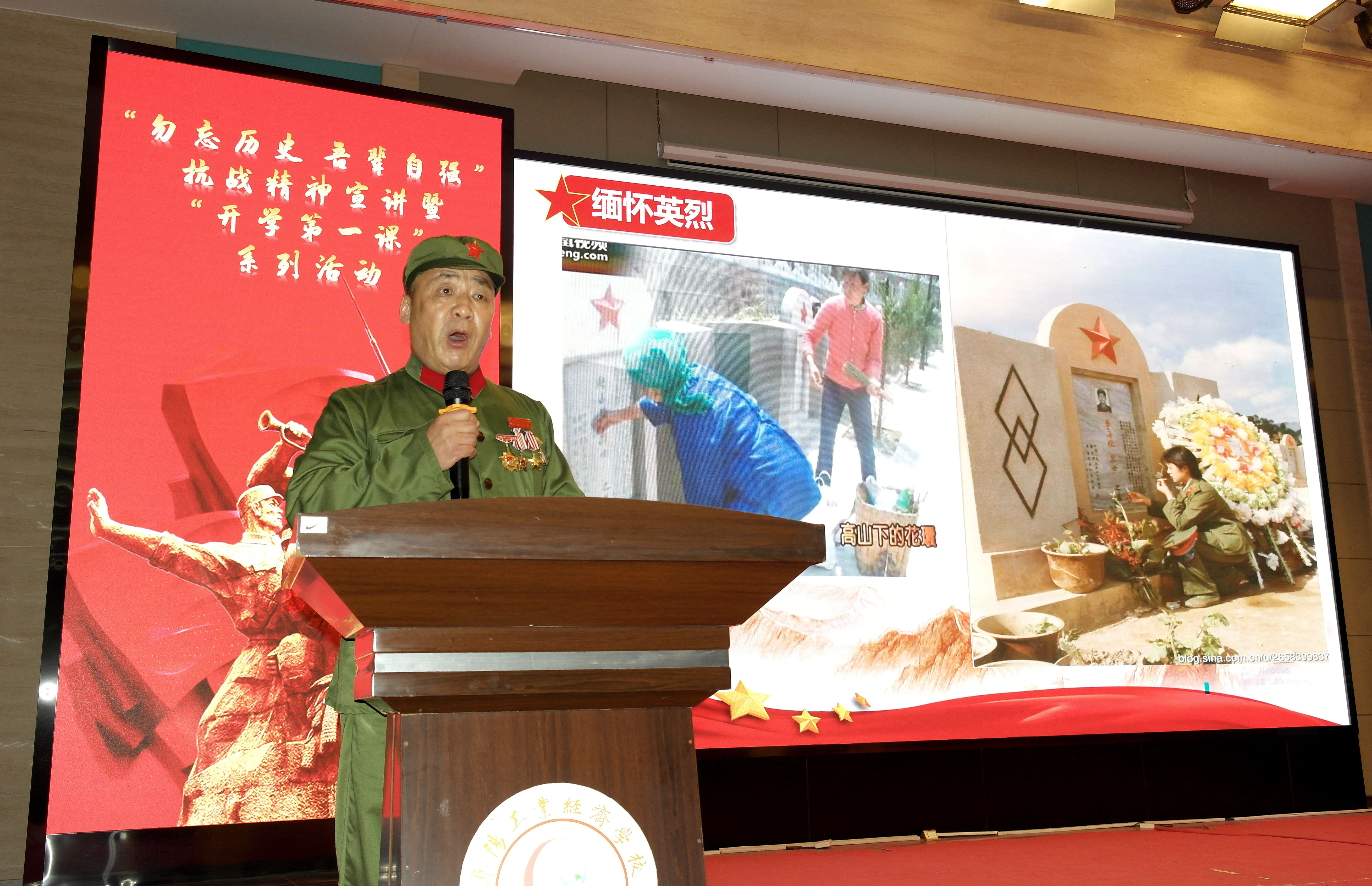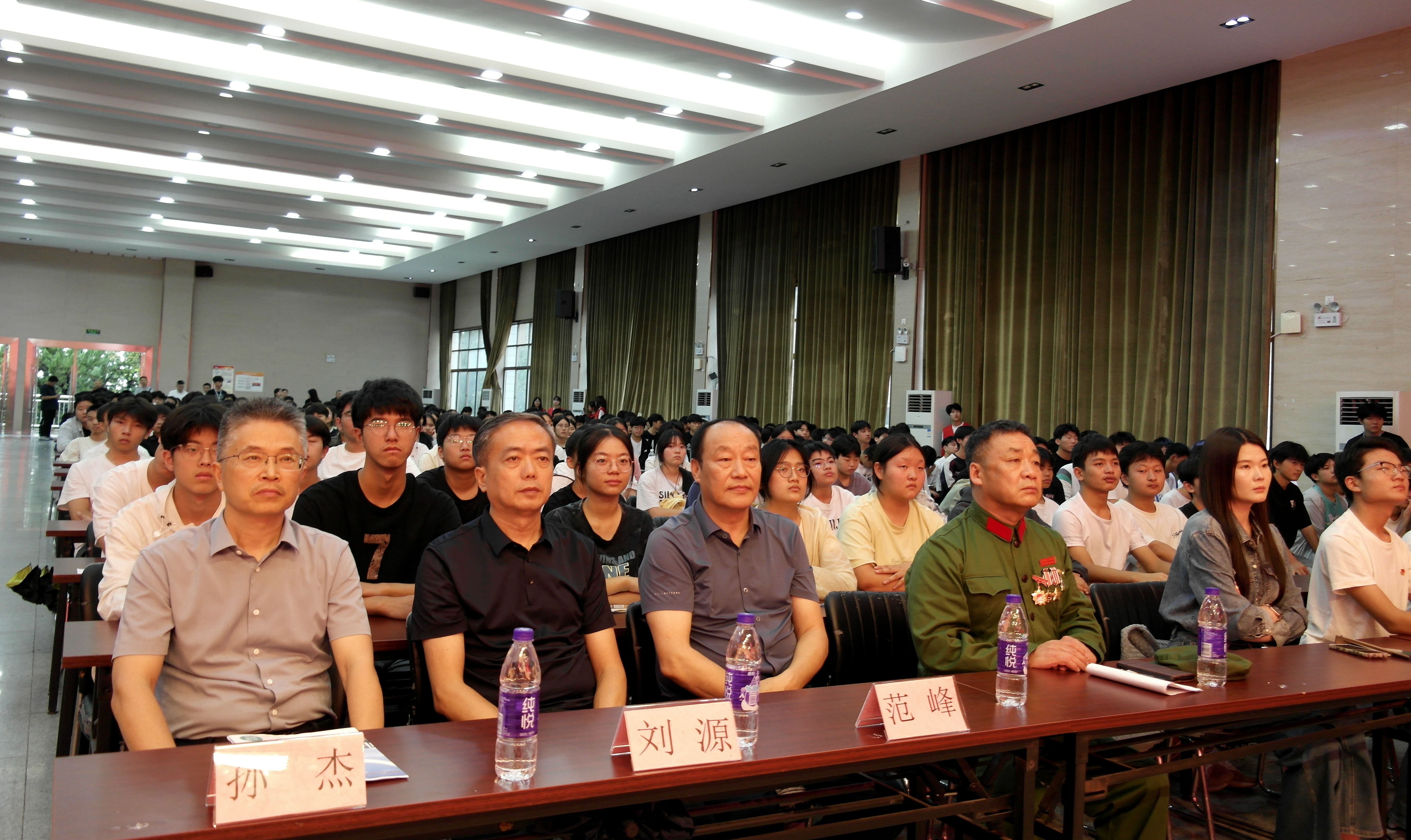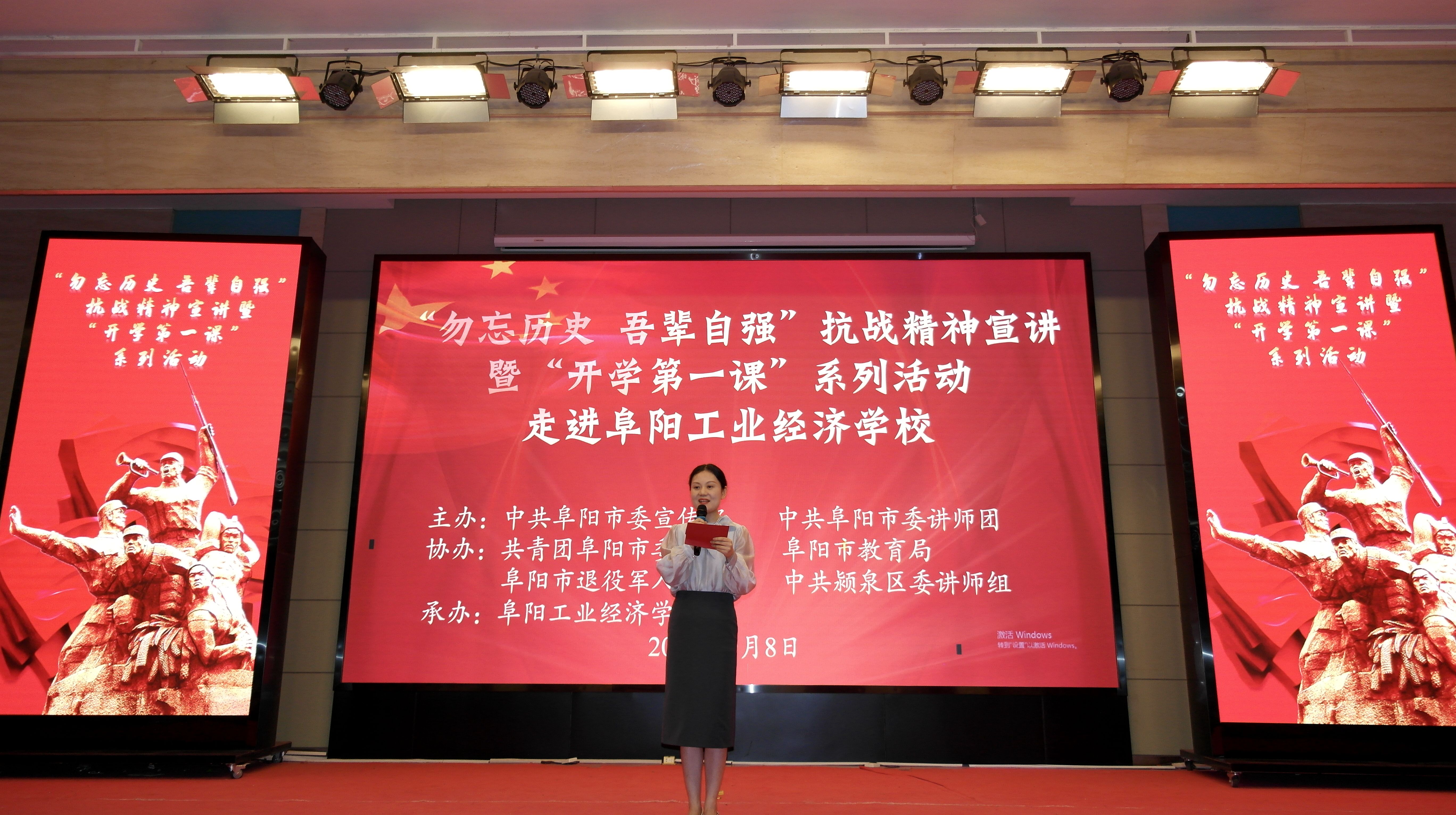 9月8日下午,由市委宣传部、市委讲师团主办的“勿忘历史 吾辈自强”抗战精神宣讲暨“开学第一课”系列活动,走进阜阳工业经济学校。市委宣传部部务会成员、二级调研员刘源,党委副书记、校长孙杰,党委委员、副校长范峰,与700余名新生共同参与活动。
