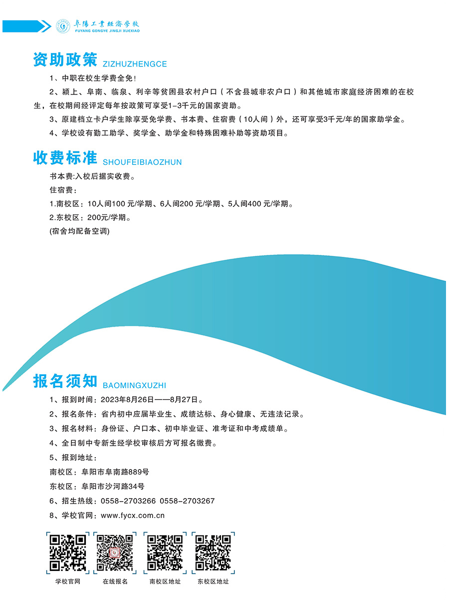 2023年阜阳工业经济学校招生简章