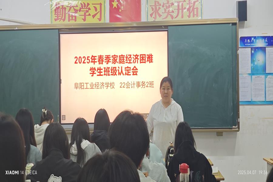 阜阳工业经济学校2025年春季学期根据皖财教[2024]1252号文件、阜财教[2025]42号文件通知要求正式启动家庭经济困难学生班级评审认定工作。各班级按照校资助办公室工作要求利用晚自习时间召开国家助学金家庭经济困难学生评审认定会,班主任系统地讲解了国家助学金的认定办法、申请条件、标准、评审、申报流程及相关表格填写注意事项。
